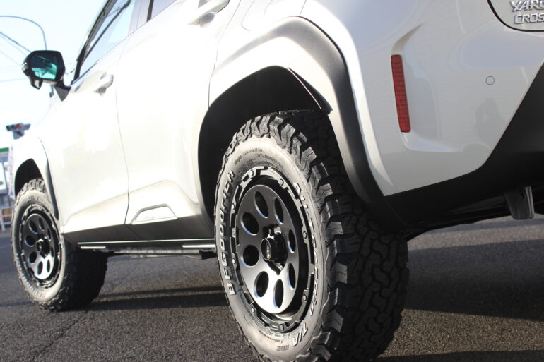 今回は新型車 ヤリスクロスハイブリットのオフ系カスタムをカスタム。