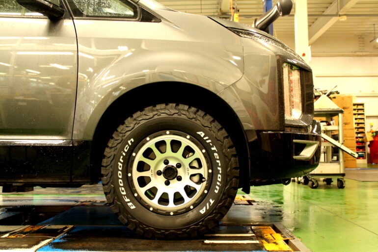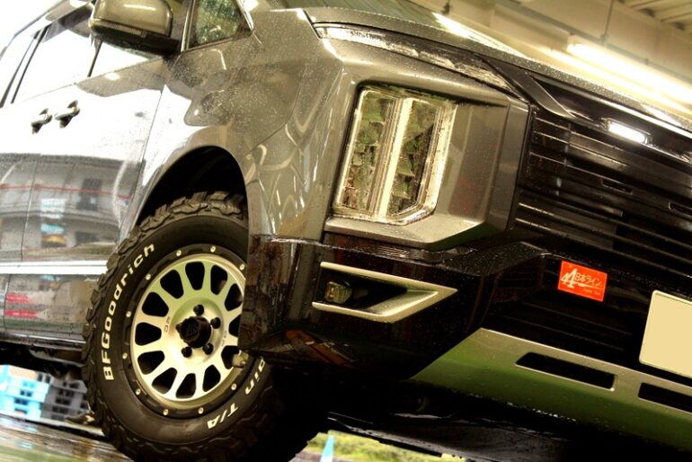 現行デリカのメカニカルなフロントフェイスに引けをとらないタイヤホイール。
