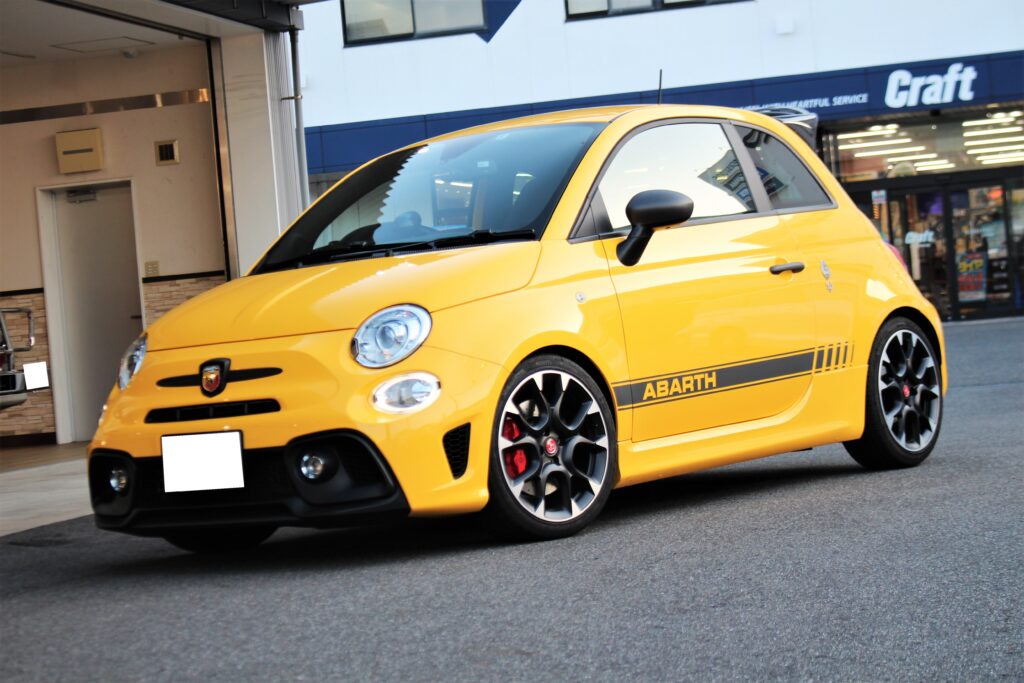 鮮やかなGiallo Modenaカラーが目を惹くアバルト595コンペティツィオーネ。