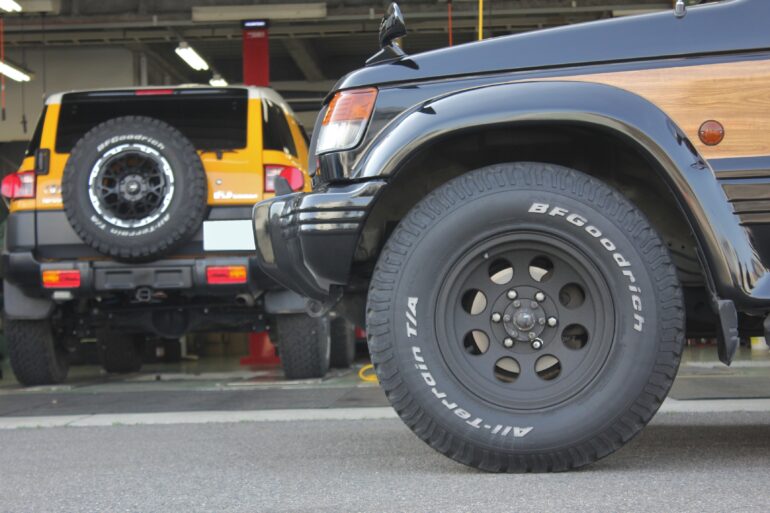 ■木目なサイドパネルがオシャレなパジェロのタイヤ交換!ヨコハマのジオランダーMTを。