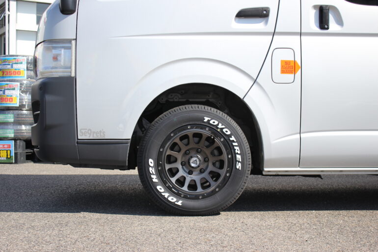 ハイエースカスタムにタイヤのホワイトレターはマスト。
