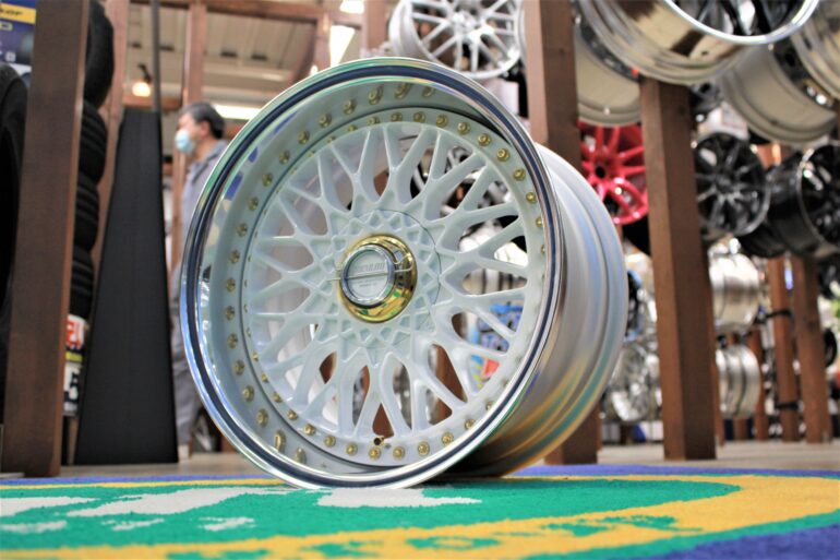 8.5J 16インチ インセット +6 4/100 が今回の展示ホイールサイズ。