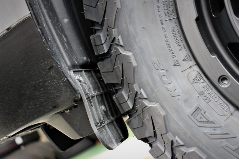 タイヤ外形を大きくするとハンドル旋回時に干渉するリスクも上がりますが