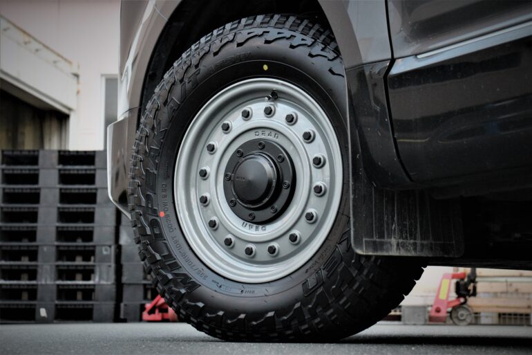 この、軍用車の様な見た目は中々ホイールだけでは演出できませんが、この見た目は最強ですね!