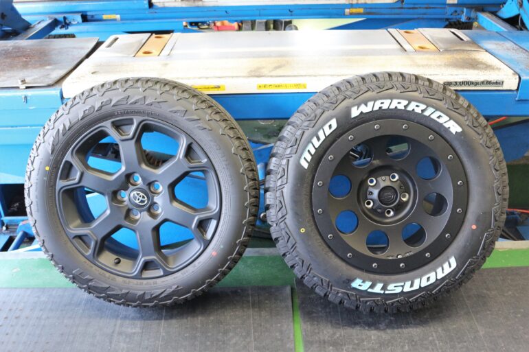 レンコン系ホイールでマッシブ仕様にし、更にオプションのアルミリングもブラックにする拘り。