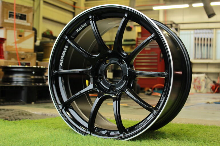 スポークの「ADVAN Racing GT」ロゴ部分は3次元加工機による彫文字加工。
