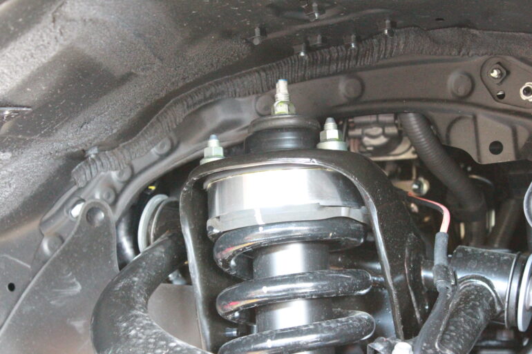 プラドの場合はRAV4と違いアッパーマウントとスプリングの間にスペーサーを挟むタイプ。