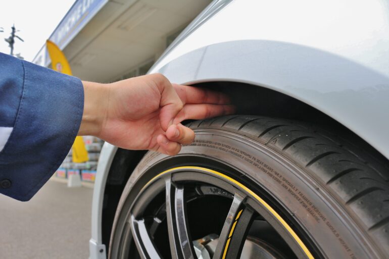 ローダウンとホイール交換でのご入庫です。