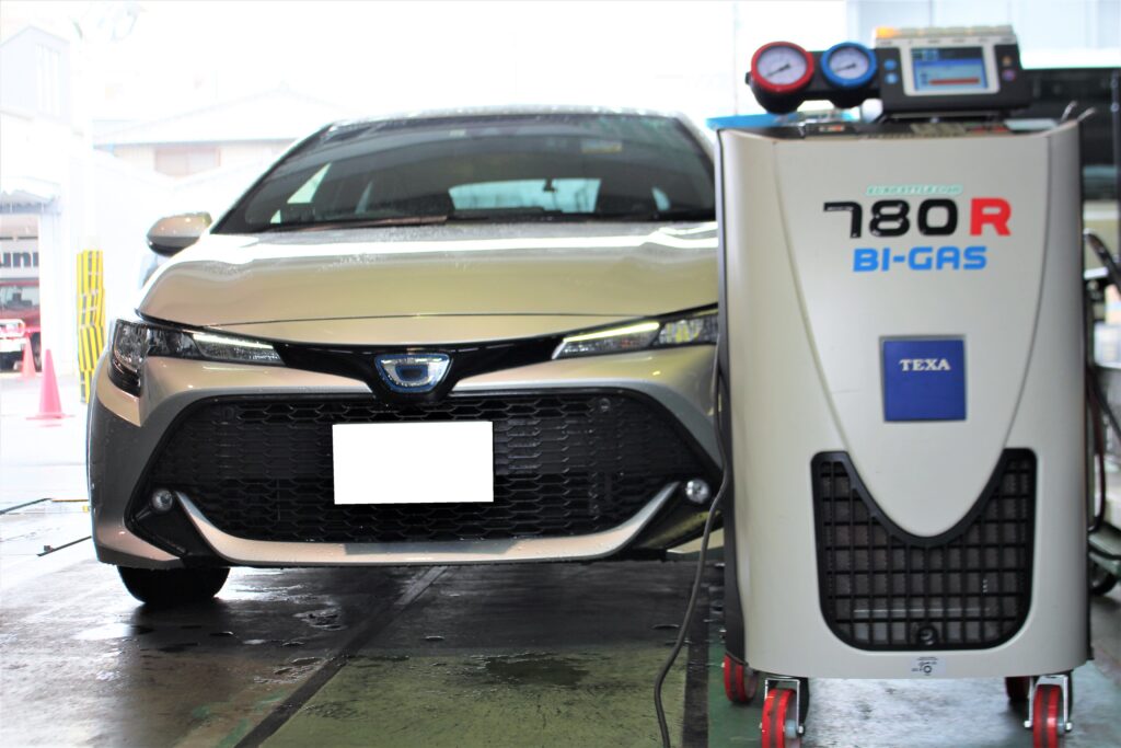 ■カローラスポーツにTEXAエアコンガスクリーニング施工!新規格のR-1234yfにも対応しています。