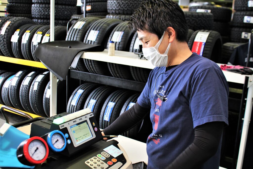 エアコンガス内に含まれる不純物を取り除き、不足したエアコンガスを規定値まで充填してくれます。「冷風がぬるいなぁ」などの症状がある場合、エアコンガスが不足している可能性もありますね。