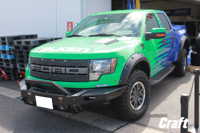 ファルケンカラーでカスタマイズされたラプターF-150は大迫力でものすごくカッコいいですよ~