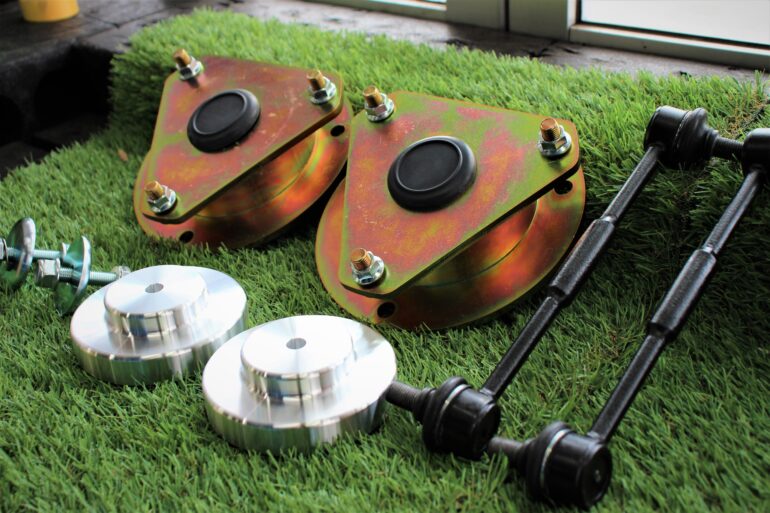 今回の「上げ」はサスペンションの交換ではなくスペーサーで行っていきます