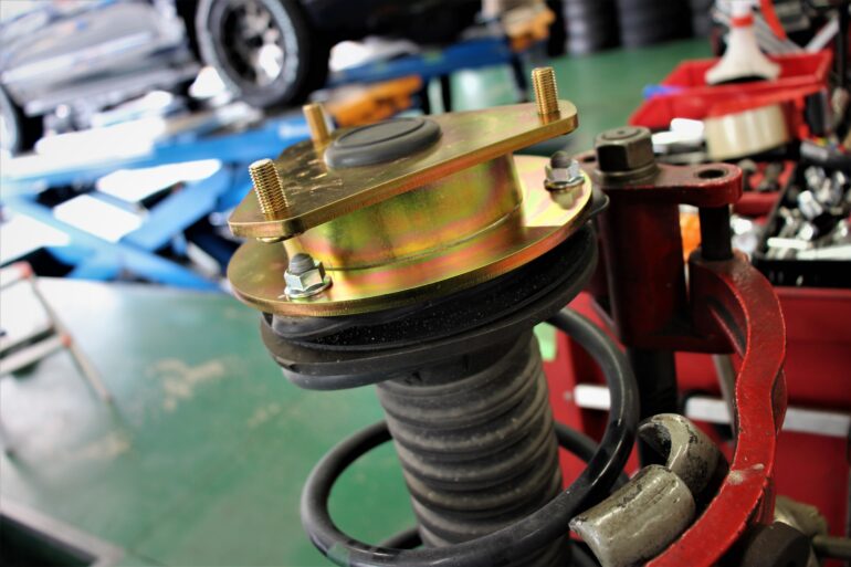 ご覧のように純正のアッパーマウントにボルトオンで取り付け