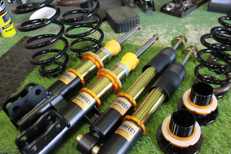 全長調整式の車高調、衝撃吸収バルブ搭載で