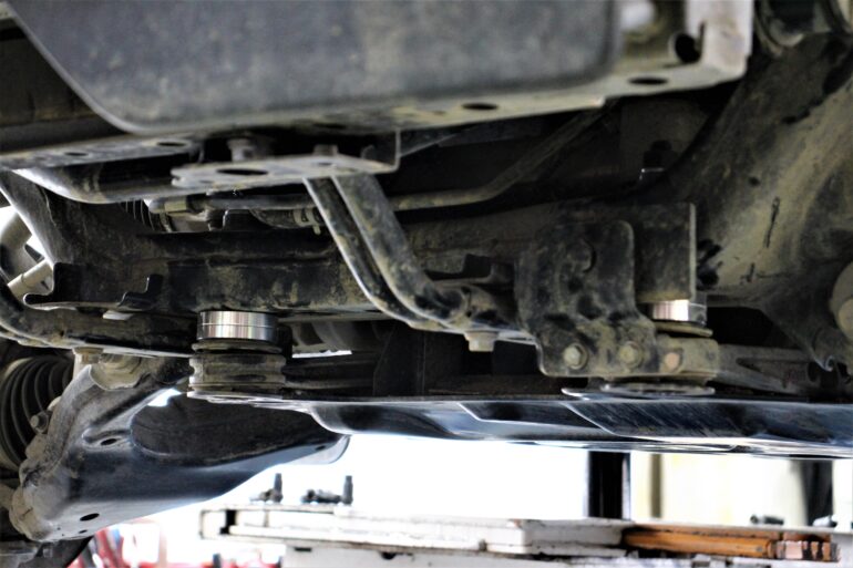 リフトアップする事で引っ張られている動きを、このスペーサーで緩やかにしていきます。