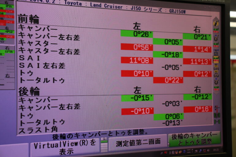 キャスターはタイヤの前後方向の傾きですね。ココもしっかりと修正していきます。