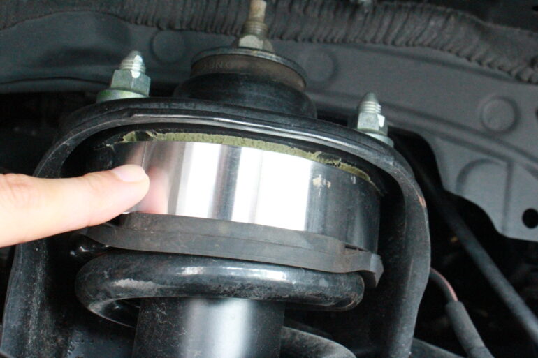 スプリングの上に装着し、アッパーマウントで挟んで完了。