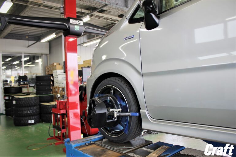 タイヤを新品に交換し最終工程の3Dアライメント調整へ