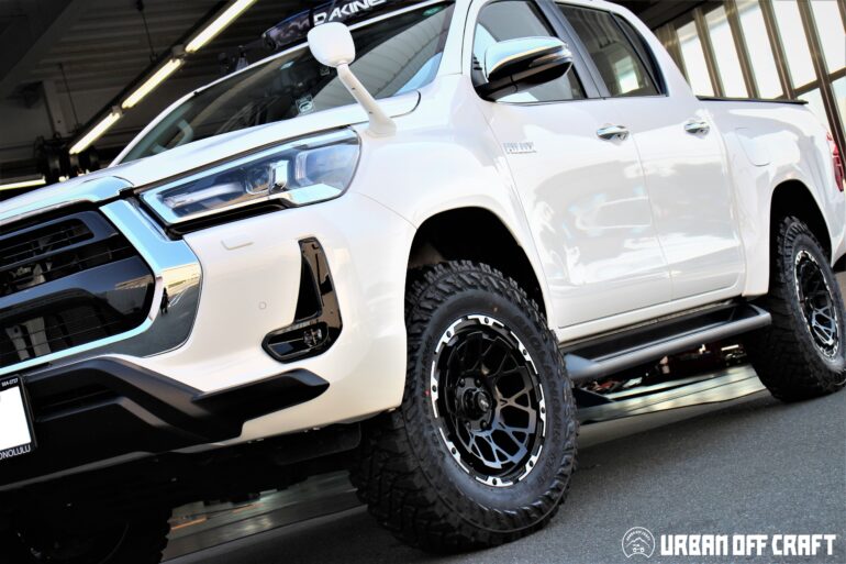 ハイラックス特有の前下がりなフォルムを解消しつつ迫力のある