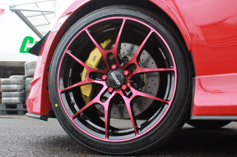 人気のボルクレーシング G025のボルドーレッドを装着。