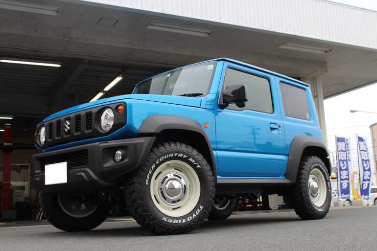 ■ ジムニー・シエラ・ノマド カスタムフェア開催中です! ジムニーカスタムフェア開催中のクラフト尾張旭店です。 ジムニー用ホイールを大量展示! デザイン・カラーをたくさん見て頂けます。 ジムニーカスタムはクラフト尾張旭店にご相談下さい。 人気ブランドホイール RAYS・4×4エンジニアリングのホイールを展示中。 鍛造モデルのAラップや、オフロードホイールと代名詞ブラッドレーもあります。 ウェッズ マッドヴァンスの新作も展示中です。 オフロードスタイルにピッタリなホイールですね! MID・PPX・デルタフォース・クリムソンなどなど 通常展示も豊富なクラフト尾張旭店です。 是非見に来てくださいね~ オフ系タイヤの在庫もありますので 即日取付可能な商品も多数あります。 ブラッドレー&カントリーサスペンションを装着したJB64デモカーを展示中です。 ホイール交換&リフトアップをするとこんなにかっこいいスタイルになりますよ! ジムニーカスタムフェアは3/8(日)までです。 たくさんのご来店お待ちしております。