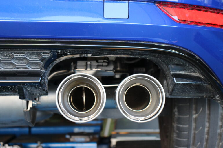純正のマフラーも左右二本出しで、綺麗でスッキリとした見た目ですが