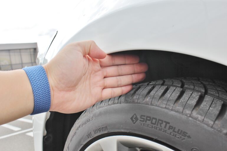 がっぽり空いたフェンダークリアランスも