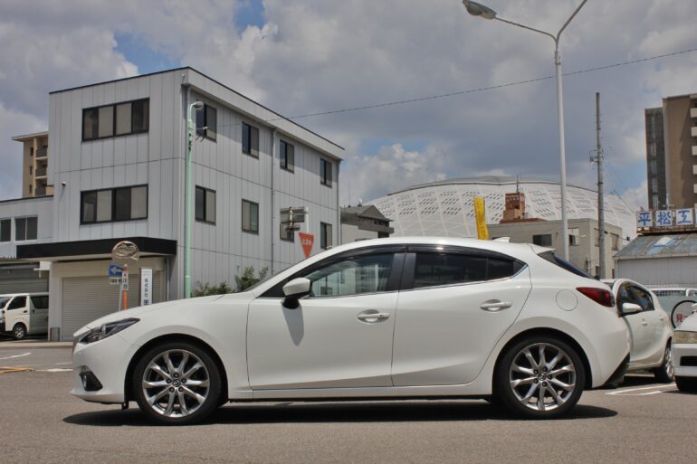 ノーマル車高のMAZDA3の出ヅラ限界チャレンジ☆ワークエモーションT5R 18インチでシンプルメイク。