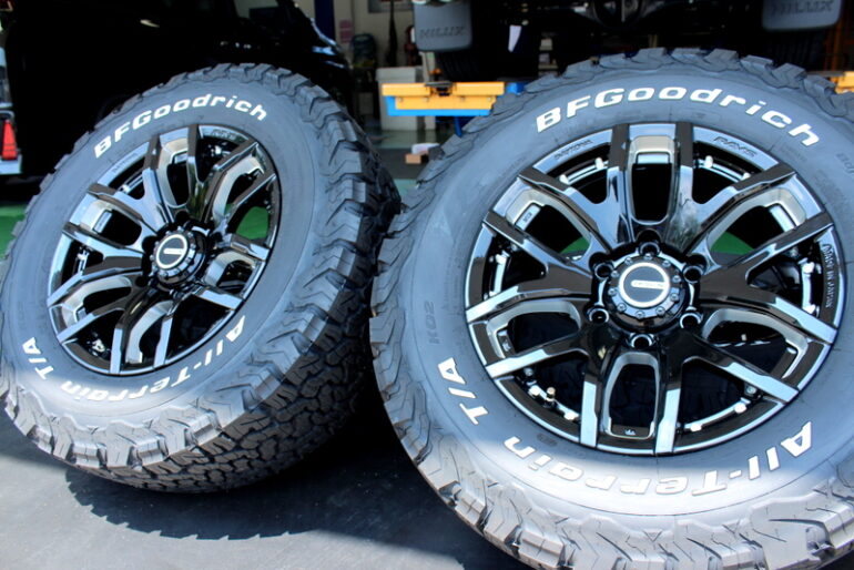 ステルスブロンズブラッシュドとジオランダー A/T4 の組み合わせ。 アウトラインホワイトレターがちょうど良い 👍     いつもありがとうございます、クラフト厚木店・佐藤です!!   本日のご紹介はM様・HILUX GRスポーツ。   TOYOTAのヨンク系って強いですね。。。   っと、言うのもココ数年、150プラドから始まり、HILUXやRAV4のカスタムを多く行っています!!   そしてココ最近ではランクル250やランクル70(GDJ76W)も増えてきており、ヨンク時代が到来しているのか??って思う程ヨンク系オーナー様からのご相談が増えています。   そんな訳で本日もHILUXのカスタムブログをお楽しみくださ~い♬♬     装着しているホイールは 「 4×4エンジニアリング Air/G ロックス 17インチ 」 となります!!   ハイラックスが装着するホイールはどのアイテムを選んでもコンケイブが効いたモデルが多いと思います。   その理由はインセットの設定にあります。     こうして見ても、なかなかのコンケイブスタイルですよね!?   Air/G ロックスには6つのFACEが設定されており、本日装着しているホイールはFACE5となっています。   ちなみに、コンケイブが強まるのは 1 → 2 → 3 と言った様に、数字が大きくなればなる程コンケイブが増す仕組み。   なので、FACE5と言うのは最大コンケイブの1つ手前と言う事。     ちなみに、HILUX GR はワイドフェンダー化されたおクルマ。   なので、インセット±0 (FACE7) 位の設定があったら更にカッコ良く仕上げられるんですけどね 👀   残念ながらそんな熱~いサイズ設定はありませんでした。。。笑     そんなAir/G ロックス に組み合せたタイヤは 「 ヨコハマタイヤ ジオランダー A/T 4 」   タイヤサイズは 265/70-17 となります!!   150プラドと違い、HILUXはタイヤを大きくするのが本当にムズカシイ車。     本日はタイヤ・ホイール交換と同時にフロントのリフトアップを行いました。   お気付きだとは思いますが、リフトアップをする理由は 「 タイヤ外径を大きくしたタイヤ 」 を装着する為!!   オーナー様がご希望されていたタイヤサイズは 265/70-17 となり、純正装着タイヤより1サイズ大きなサイズ。   ですが、HILUXの場合はそんな1サイズアップでも干渉問題が付きまとうんです。。。汗     本日のリフトアップアイテムは 「 JAOS リフトアップスプリング 」 となります。   車高調式(VFCA)の場合は大きくリフトアップ出来ますが、本日装着のリフトアップスプリングは1,5インチ程のリフトアップ量。   HILUXは車高をアゲればアゲるほど大きなタイヤを装着出来ます。   ちなみに、リフトアップ量が1,5インチ程の場合は 265/70-17 が限界でしょうね。。。   作業終了後に干渉の有無をチェックしましたが、問題なく無事に装着出来ていましたよぉ~ 👍   貴方の愛車はどんな仕上がりがご希望でしょうか?? ご相談お待ちしておりま~す♬♬     M様、この度はご利用誠にありがとうございました!!   前下がりスタイルがしっかり補正され、そして足元を支えるタイヤ・ホイールも迫力UP出来ましたねっ✨   カッコ良く仕上がった愛車は眺めているだけでも楽しいですよね。。。笑   もちろんカッコ良く仕上がった愛車でのドライブは格別、沢山お出掛けしてくださいねっ♬♬   それではまたのご利用よろしくお願いしま~す☆☆