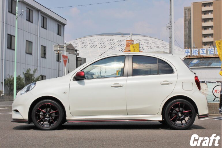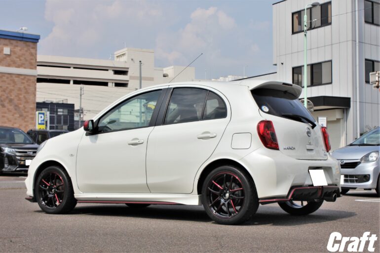 ■鮮烈な真紅マシニングラインの1ピースホイール,ワークエモーションCR極「紅-kurenai-」 マーチニスモに装着!