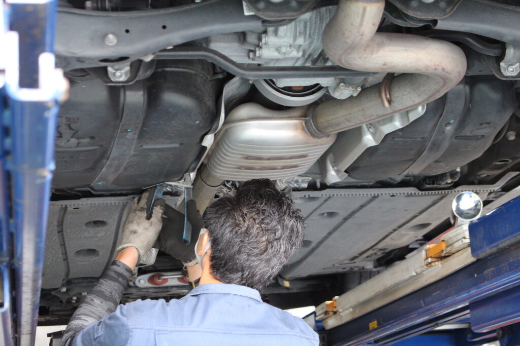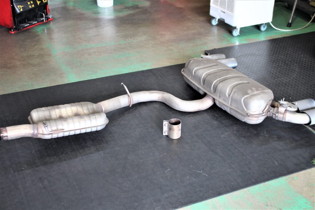 まずは純正マフラーの切り離しからスタート!