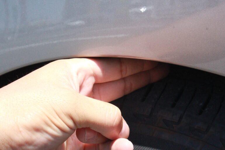 指2本ほどまでタイヤとフェンダーの隙間を埋める事が出来ました。