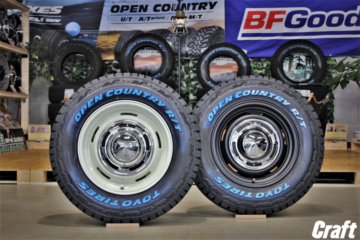 このクラシカルなデザインのホイールとBFグッドリッチ、オープンカントリーRTのホワイトレターが組み合わさって