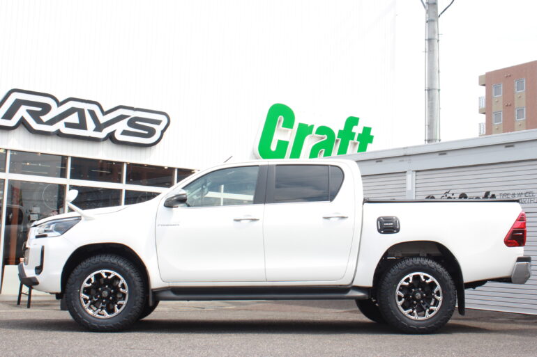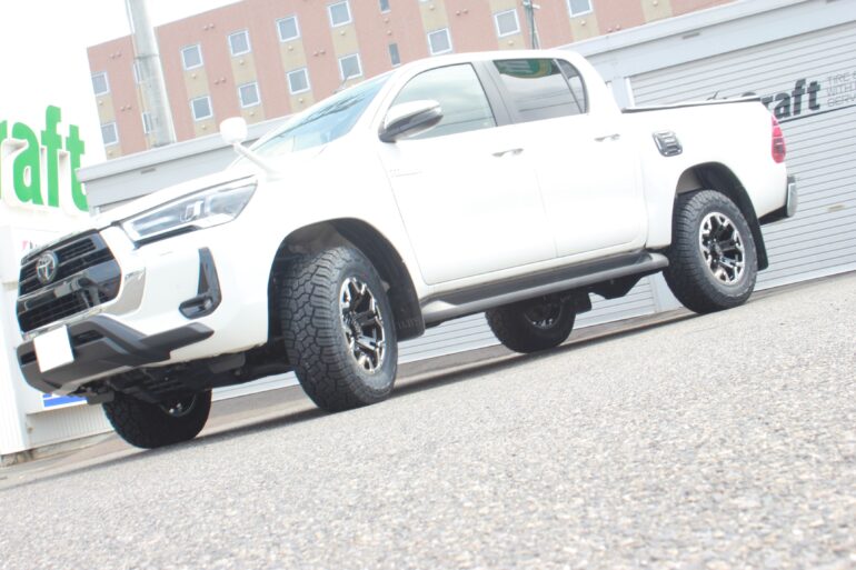 早速お取り付けを行い、完成したハイラックスがこちら。