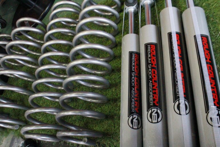 今回のサスペンションキットはラングラーオーナー様からご用命の多いラフカントリーのサスペンションキットを装着しました。