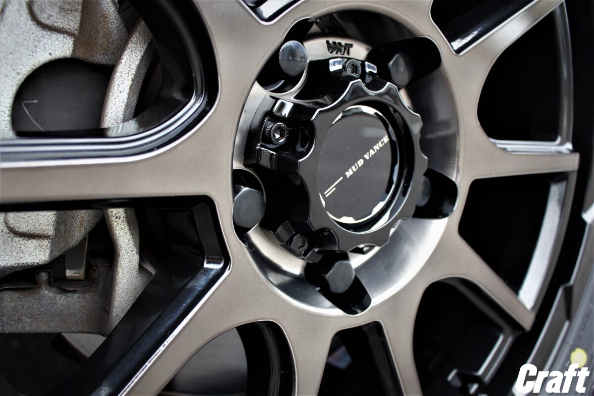 リムフランジも一般的なビードロック風ではなく台形のプレスを連ねた無骨な装いで主張しすぎない適度なオフ感となる一本