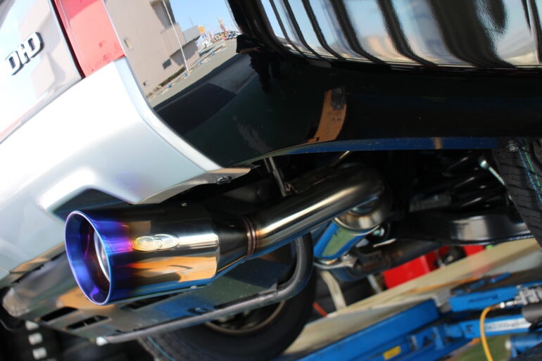 リヤピースのみの交換となります。出口は焼き色が綺麗なチタニウム製ブルー発色となっています。