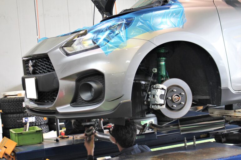 車高調取付が完了したらマフラー交換へ。