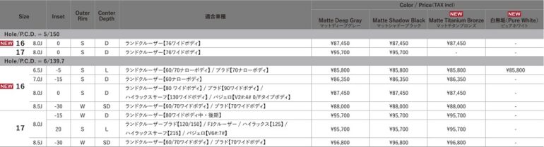 16インチといってもランクルを中心としたコアなラインナップとなり