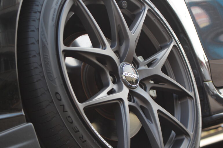 ホイール装着前にブリッツの車高調でローダウンも行って