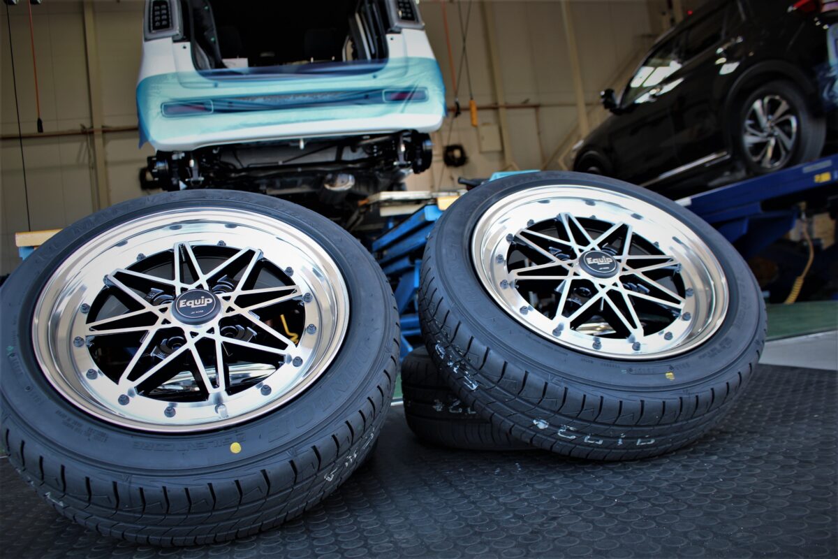 ホイールは旧車テイスト漂うエクイップ03。