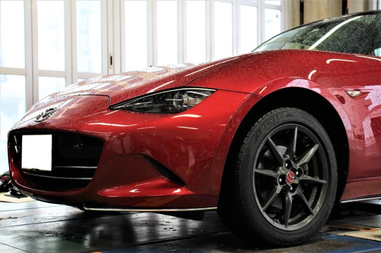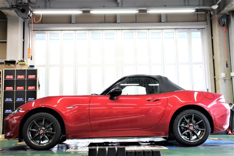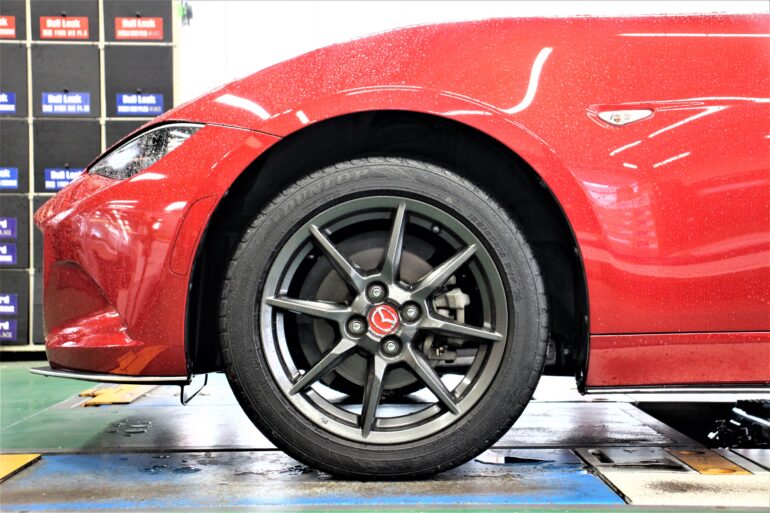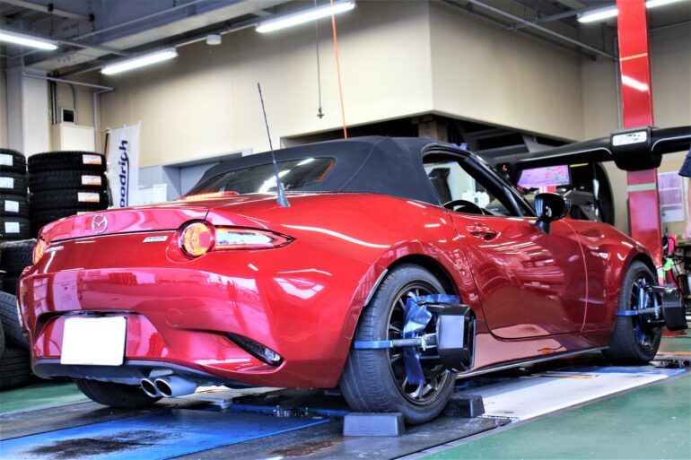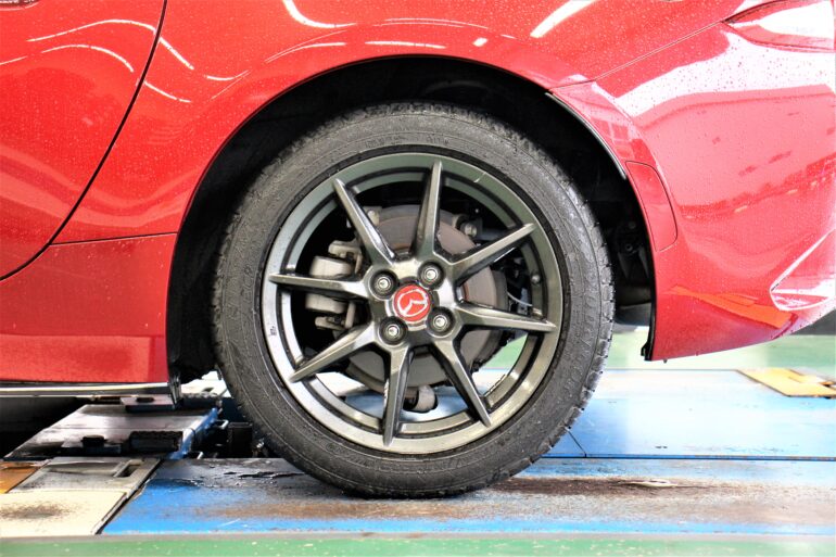 今回のホイールサイズはロード―スターには少し、きついサイズでの取り付けだった事も有り、アライメントで