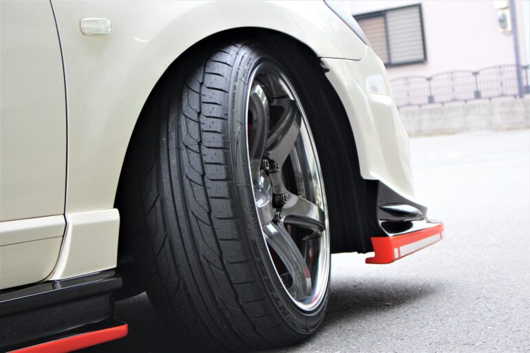 車高調でガッツリローダウンされたお車に