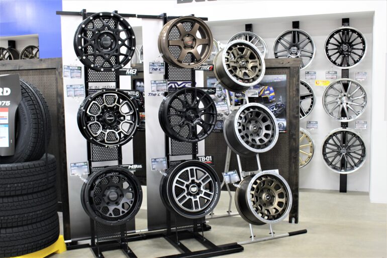 その展示スペースには各メーカーさんのサンプルホイールが沢山並んでいますよぉ~♬♬