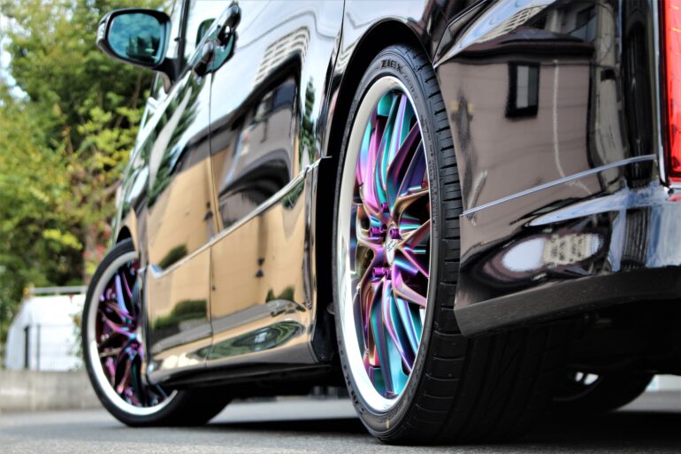 ホイール単品で見ると少し派手な印象のカラーですが