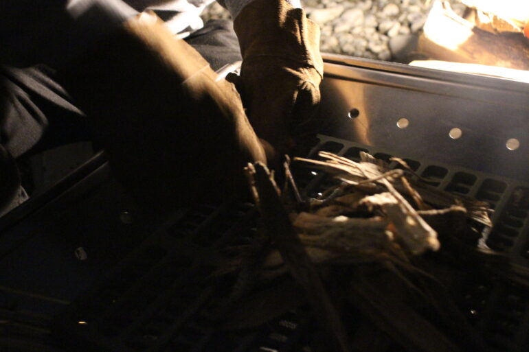 早速、浜松店のチャッカマンこと寺田パイセンが焚火台へ火を入れる準備をしてくれています。