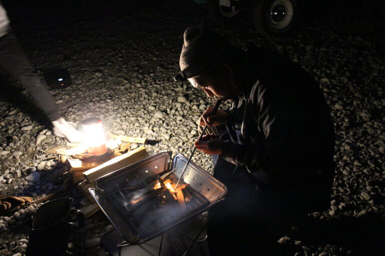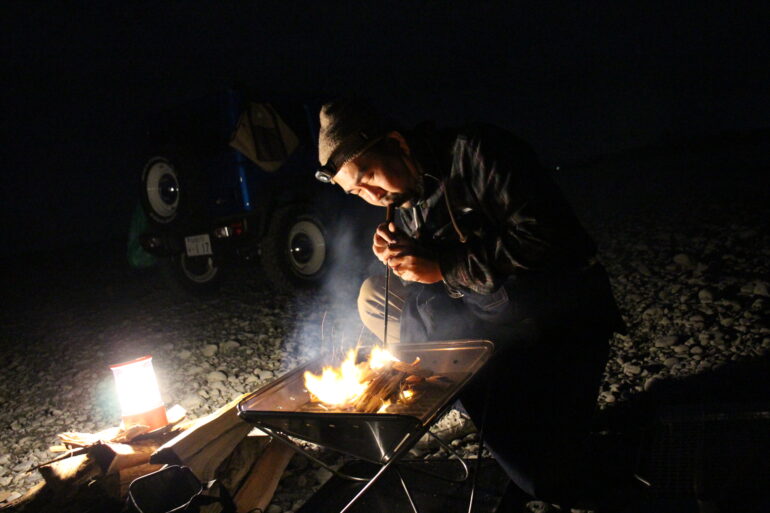 現地に到着して次の目的だった【焚火】を行う事に!