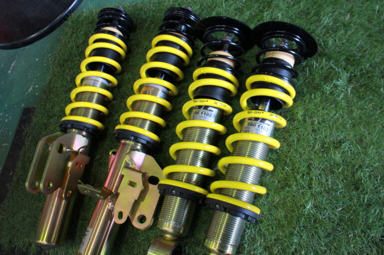 XAモデルは減衰力16段調整、ネジ式の車高調。