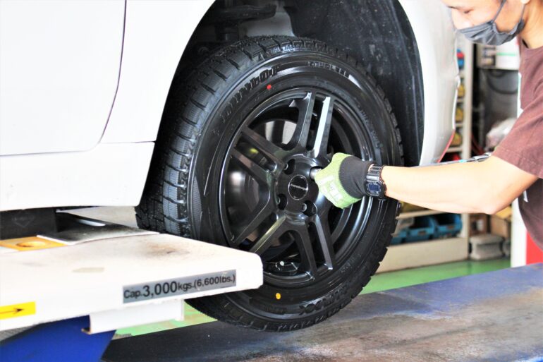 愛車の冬支度。新品スタッドレスタイヤへの交換作業も増えてきています。