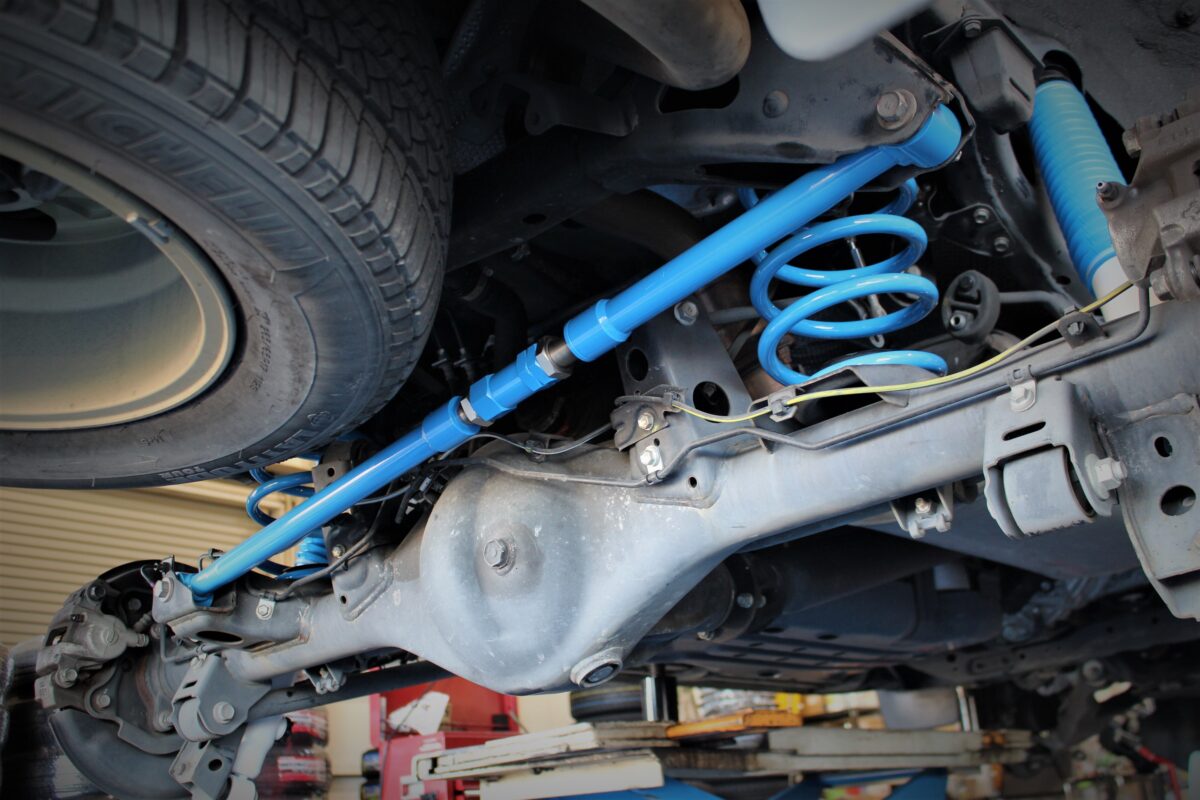リフトアップと同時に取り付けしたい補正パーツと言えばリアの調整式ラテラルロッド。他メーカーでも